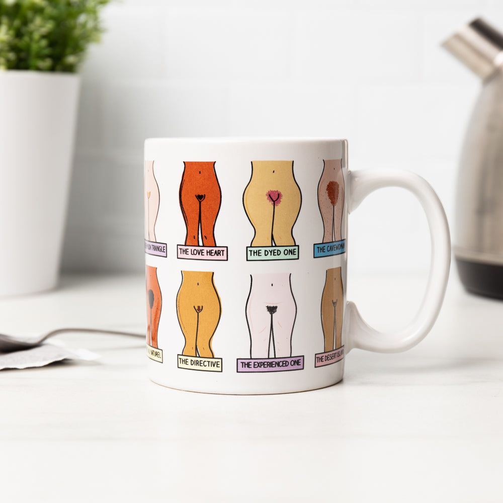 Celebrate the evolution of female pubic hair - in all of its beautiful forms - with the Muff Mug!